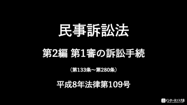 YouTube【YouTube】民事訴訟法 第2編 第1審の訴訟手続 の読み上げ動画を公開しました。