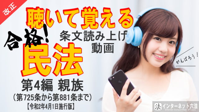 YouTube【YouTube】民法 第4編 親族(令和2年4月1日施行)の読み上げ動画を公開しました。